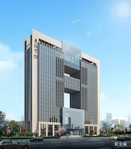 遷安市榮福宮大廈由唐山榮茂實業集團有限公司投資建設,位于河北省遷安市南四環南側,是集高檔酒店式和配套商業、會議、辦公及會所等功能的高標準智能化商務大廈,設計師充分發揮了其卓越的想象力與創造性,整座建筑外立面設計特征鮮明,個性突出.整個建筑設計形態中主要強調外裝飾的對稱關系和現代建筑特點的結合.