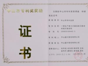 經(jīng)中山市知識(shí)產(chǎn)權(quán)局評審,盛興公司自主發(fā)明技術(shù)創(chuàng)新專利(一種生產(chǎn)單元式單元板塊的鏈?zhǔn)捷斔蜋C(jī))榮獲中山市專利金獎(jiǎng)。