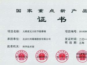 日前,由江河幕墻自主研發的創新產品“大跨度無立柱節能幕墻”,經過順義區科委、北京市科委、國家科技部和國家科技專業專家組等層層嚴格審查把關后,最終順利通過2010年國家重點新產品認定,此舉標志著江河幕墻自主創新再獲重大突破。由國家科..